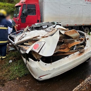 O que se sabe é que o motorista do caminhão silo perdeu o controle da direção e atingiu o carro no qual estava a mulher. Parte da carga de ração chegou a espalhar no canteiro central da rodovia.