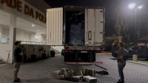 A droga estava escondida em meio ao carregamento de carne suína, segundo as informações da polícia, a escolha do tipo da carne também dificulta os cães farejadores a encontrarem a droga.