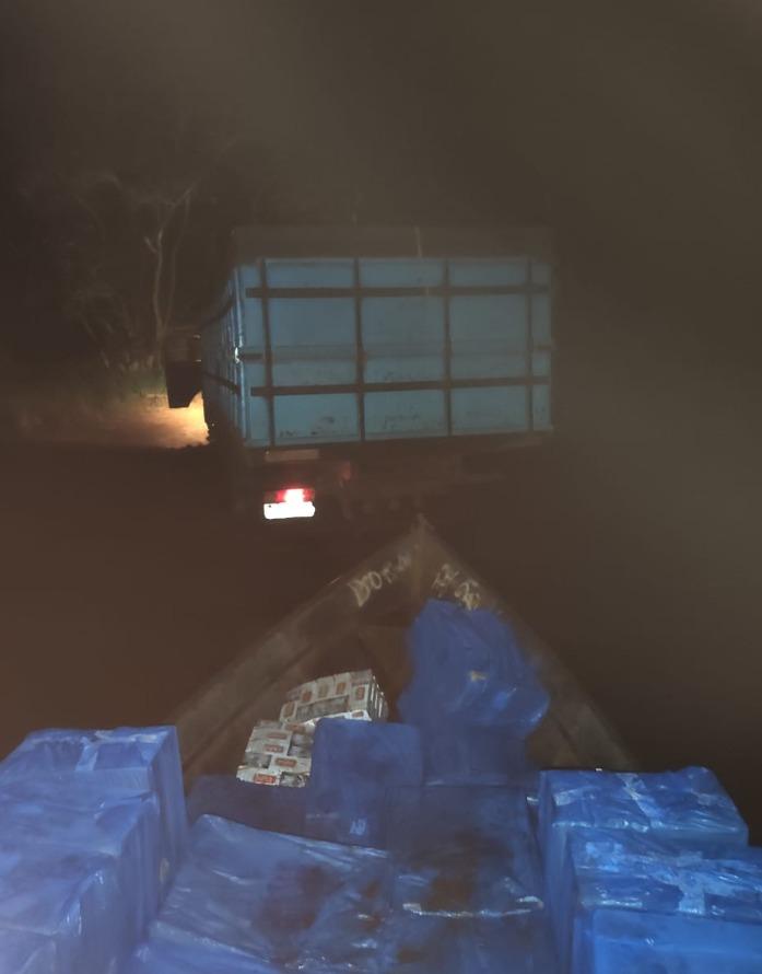 No local foram apreendidos um caminhão e uma embarcação de ferro, de grande porte, carregados num total aproximado de 100 caixas de cigarro paraguaios, representando um prejuízo de aproximadamente R $500.000,00 (quinhentos mil reais) aos criminosos da região.
