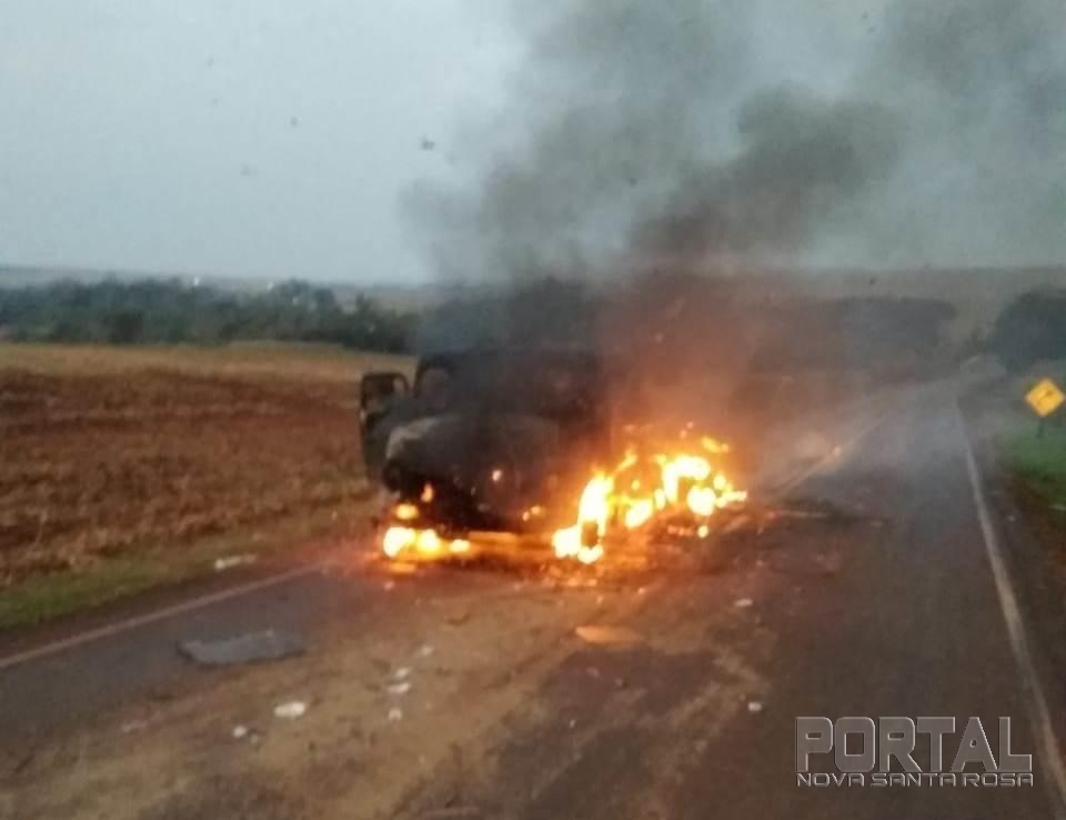 Um caminhão pegou fogo no final da madruga desta quinta-feira (03) na rodovia PR-364, entre os municípios de Palotina e Terra Roxa.