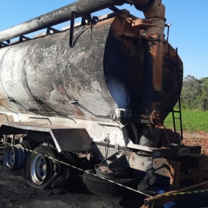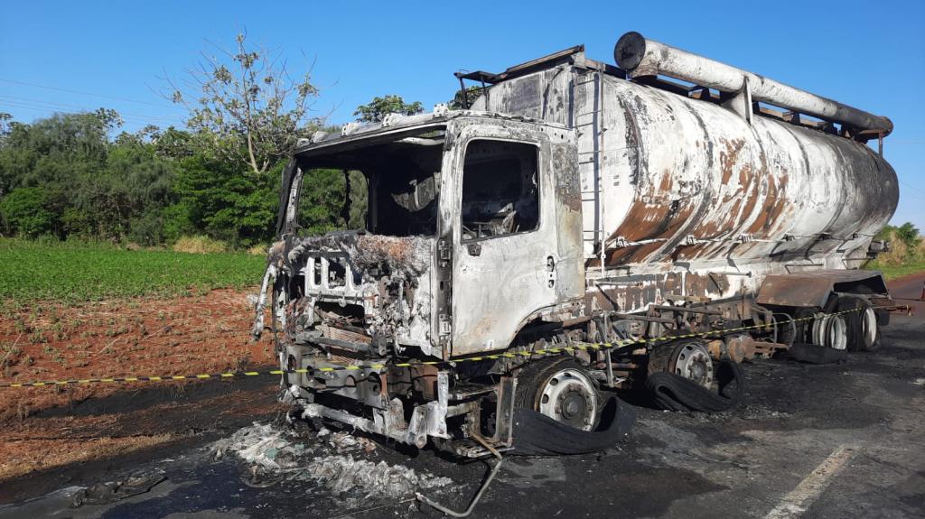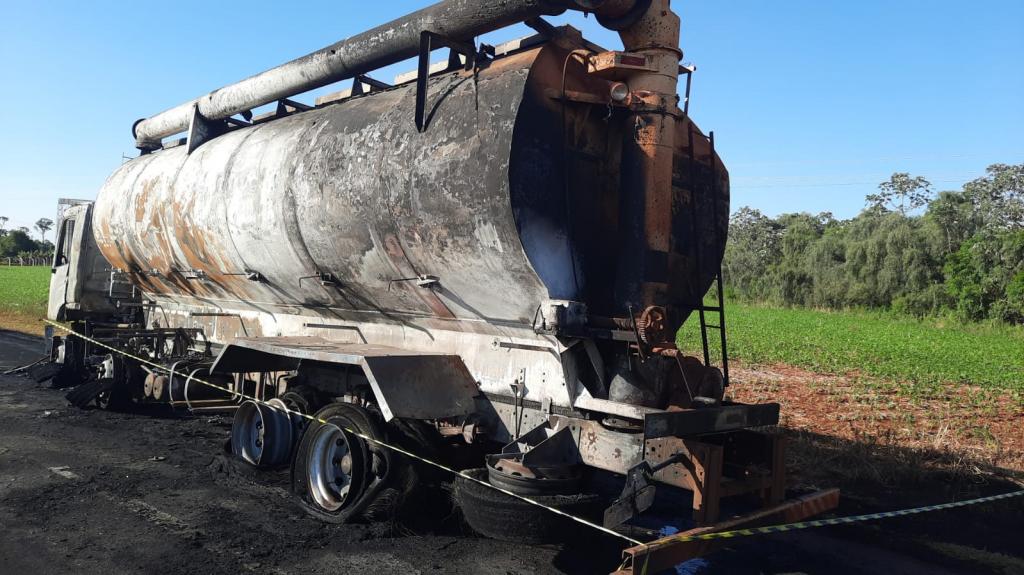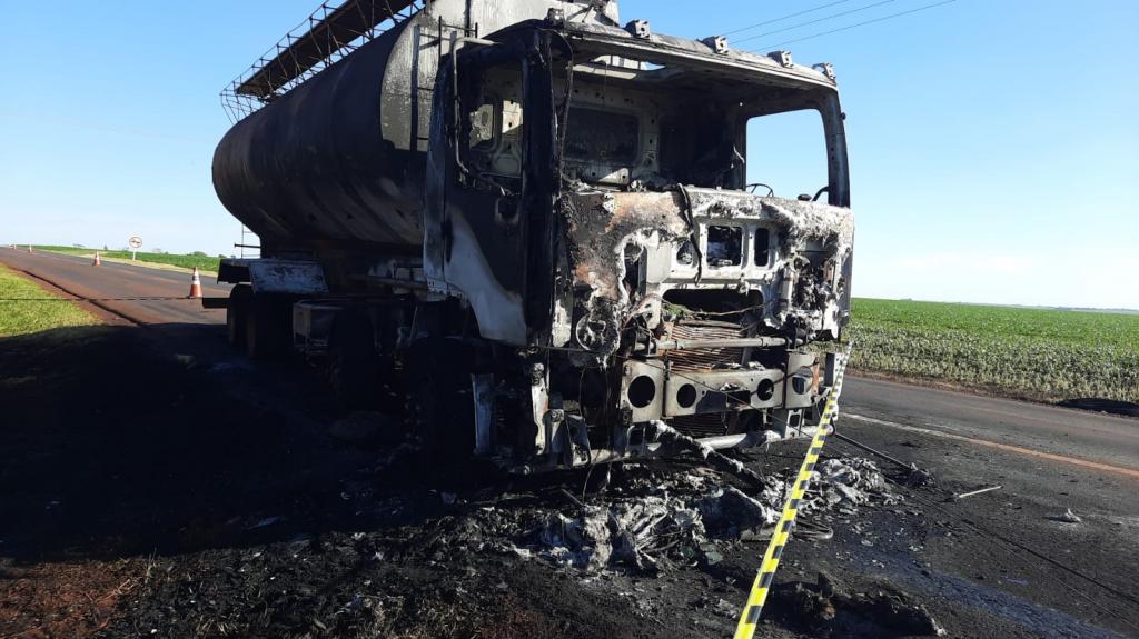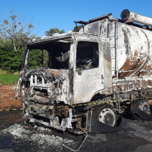 A princípio o caminhão seguia pela rodovia quando começou as chamas, que acabou consumindo todo o veículo.