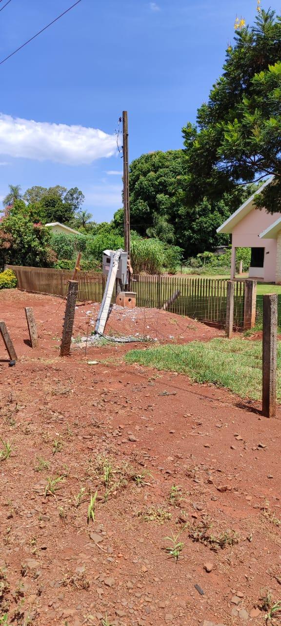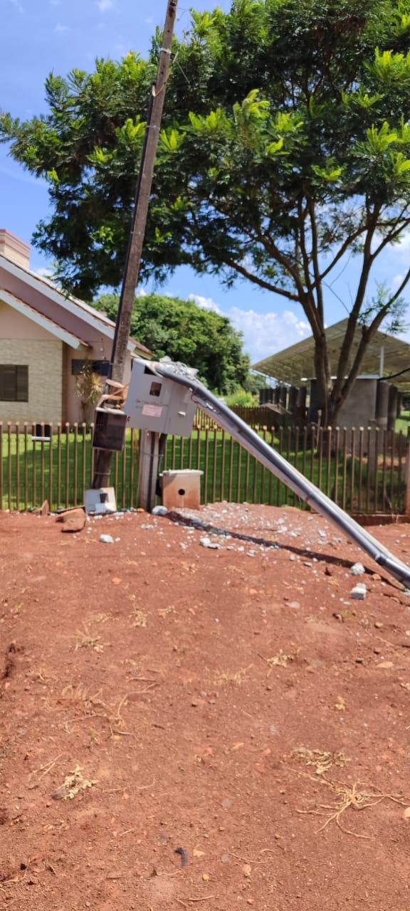 No início da tarde de hoje, quinta-feira um caminhão carregado com um maquinário agrícola rompeu fios de energia e quebrou um posto na entrada do distrito de Novo Sarandi, em Toledo.