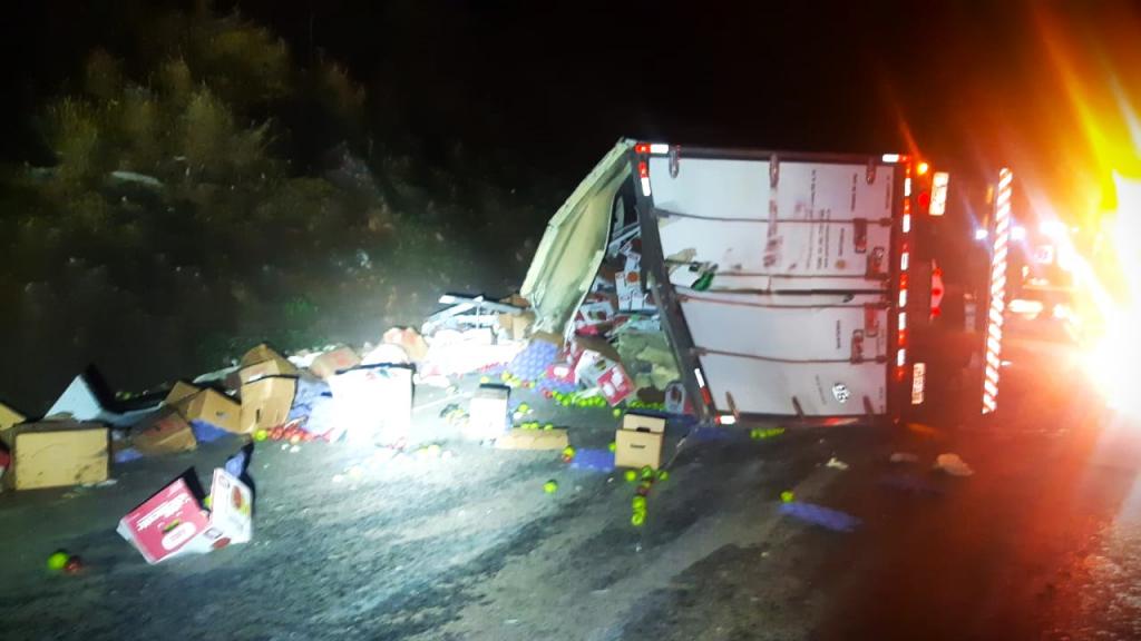 Conforme as informações da Polícia Rodoviária Federal (PRF), o acidente aconteceu por volta das 20h50, no km 197 da BR-373. O veículo seguia sentido Imbituva a Ponta Grossa, quando tombou e colidiu contra um barranco. Parte da carga do caminhão, de maçãs, se espalhou na pista, o que levou a interdição do local.