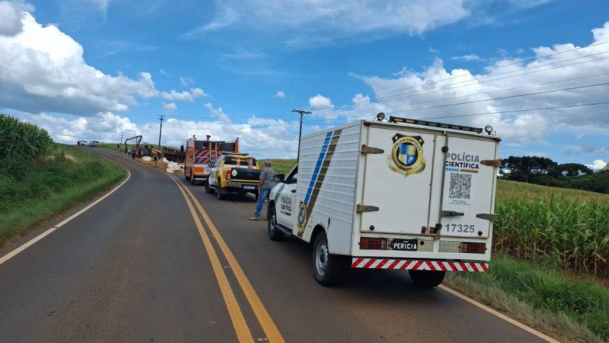 De acordo com informações fornecidas pela Polícia Rodoviária Estadual (PRE), o caminhão transportava uma carga de batatas, que se espalhou pela pista após o tombamento. O motorista ficou preso às ferragens e teve o óbito constatado ainda no local do acidente.