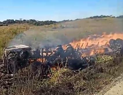 Após tombar ao lado da rodovia o caminhão pegou fogo e foi completamente destruído pelas chamas. O Corpo de Bombeiros de Palmas foi acionado para conter o fogo.