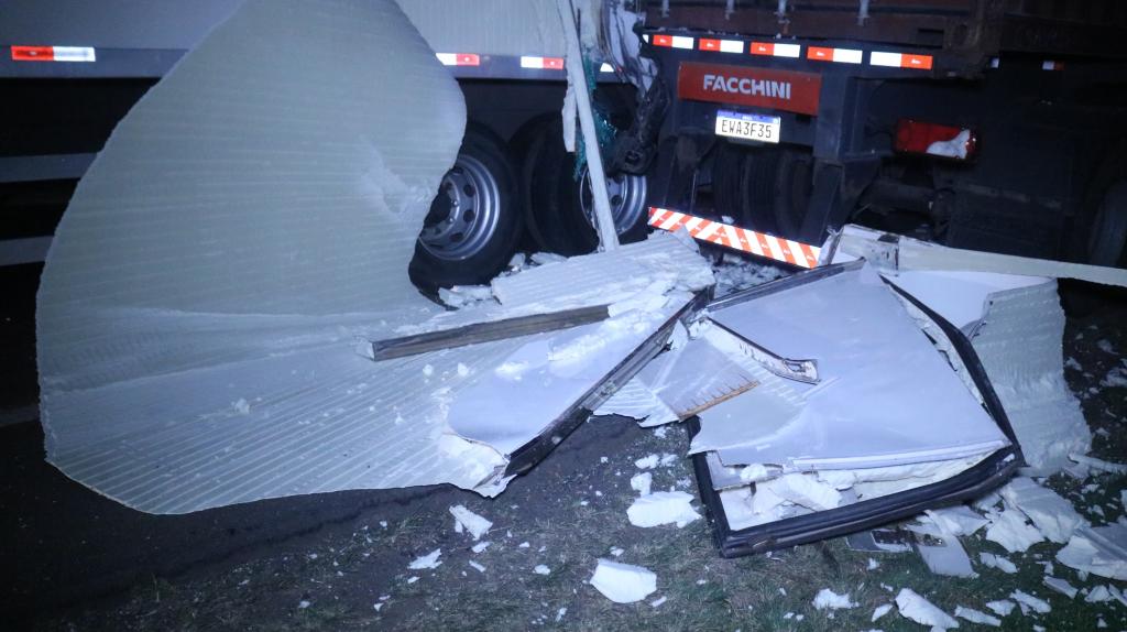 Conforme informações, o veículo baú estaria seguindo de Londrina (Norte paranaense) para Ponta Grossa, quando acabou colidindo na parte traseira do caminhão contêiner, o qual estaria estacionado, sem sinalização.