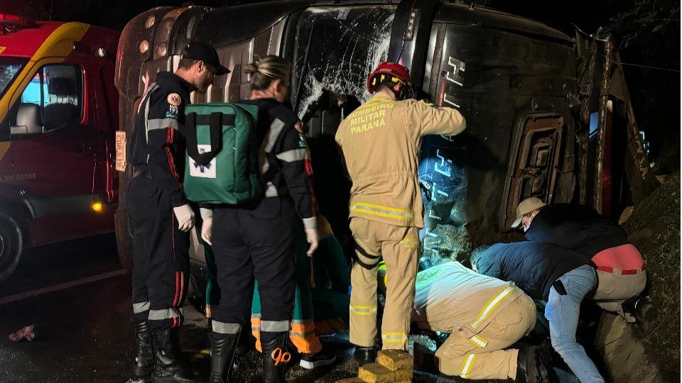De acordo com a Polícia Rodoviária Federal (PRF), o motorista perdeu o controle do veículo ao realizar uma curva, o que ocasionou o tombamento. O homem, de origem paraguaia e de 43 anos de idade, ficou gravemente ferido, pois ficou com uma das pernas presa embaixo da cabine. Ele foi socorrido por equipes do Samu e encaminhado para o Hospital São José, em Laranjeiras do Sul. Posteriormente, devido a gravidade das lesões, a vítima foi transferida para o hospital São Vicente, em Guarapuava.
