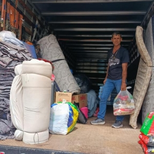 O caminhoneiro Marcelo da Rosa, conhecido como Solitário, está realizando uma campanha de arrecadação de donativos para as vítimas do ciclone que atingiu a cidade de Rio Bonito do Iguaçu. A carreta de Marcelo está estacionada na Avenida Parigot de Souza, próximo ao Teatro Municipal de Toledo, e a comunidade tem colaborado intensamente com doações de colchões, medicamentos, água, leite, alimentos e materiais de higiene pessoal.