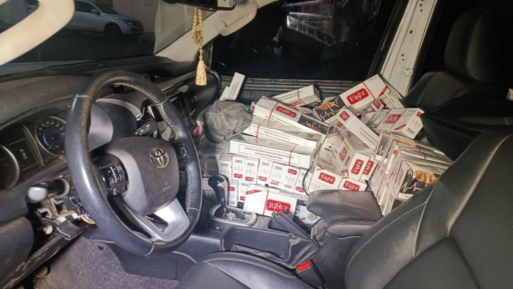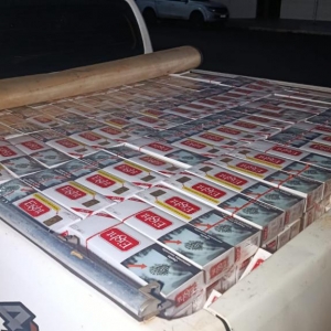 Na verificação do veículo, os policiais constataram que a Hilux estava carregada com grande quantidade de cigarros de origem paraguaia. A caminhonete também apresentava placas que não correspondiam ao chassi, sendo identificada como produto de furto ocorrido em junho deste ano na cidade de Jandaia do Sul, no Norte do Paraná.