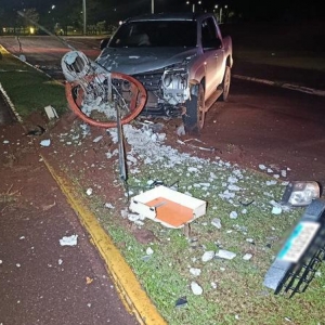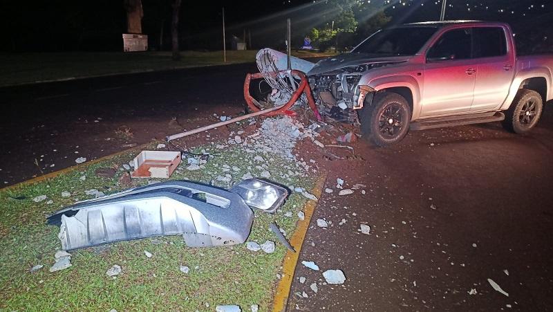 De acordo com informações obtidas no local, a caminhonete seguia pela Avenida Maripá quando o motorista realizou conversão à direita para acessar a Avenida Egon Pudel, nas proximidades do Largo dos Pioneiros. Nesse momento, o condutor perdeu o controle da direção e atingiu um poste de iluminação pública localizado no canteiro central, derrubando a estrutura.