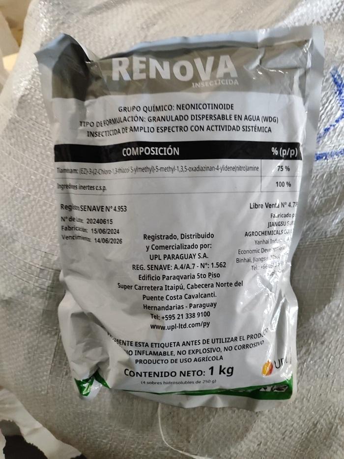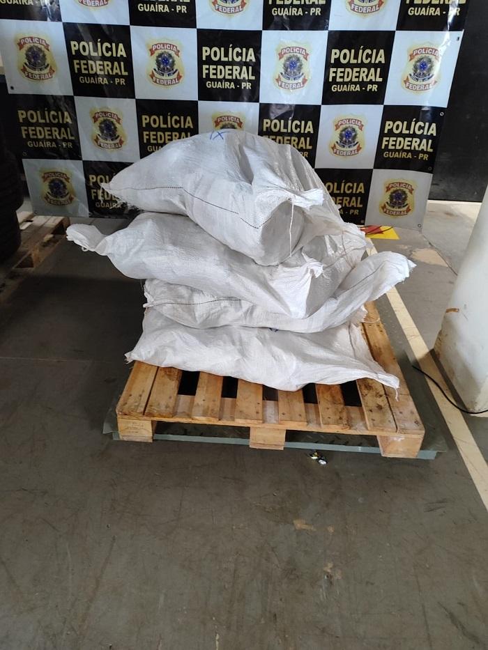 A revista veicular revelou um arsenal de 129 kg de inseticidas da marca "Renova", de origem estrangeira, escondidos em sacos de nylon na caçamba do veículo.