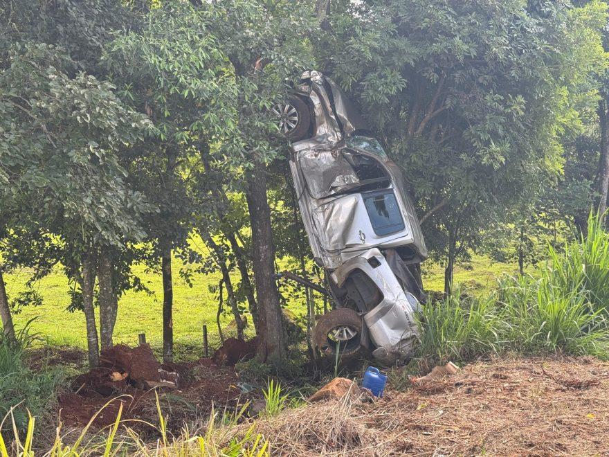 Um acidente de trânsito ocorreu na tarde de quarta-feira (29), por volta das 16h, na rodovia PR-566, localizada em Francisco Beltrão, Paraná. O trecho do incidente liga o município à Itapejara D’Oeste. O veículo envolvido, uma caminhonete VW Amarok, que seguia no sentido de Francisco Beltrão, saiu da pista em um trecho reto, colidiu contra um barranco e acabou atingindo uma árvore, ficando encavalada.