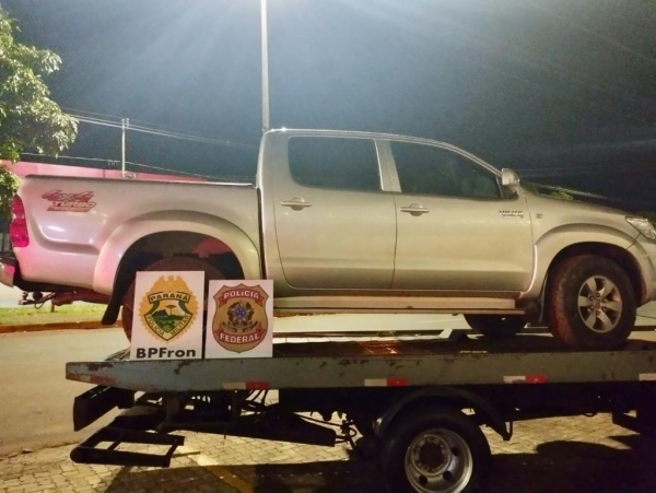 Na noite de quarta-feira (22), policiais militares do BPFron- Batalhão de Polícia de Fronteira em ação integrada com policiais federais recuperaram uma caminhonete Toyota/Hilux, que havia sido roubada em 22 de novembro de 2023, na cidade de Altônia.