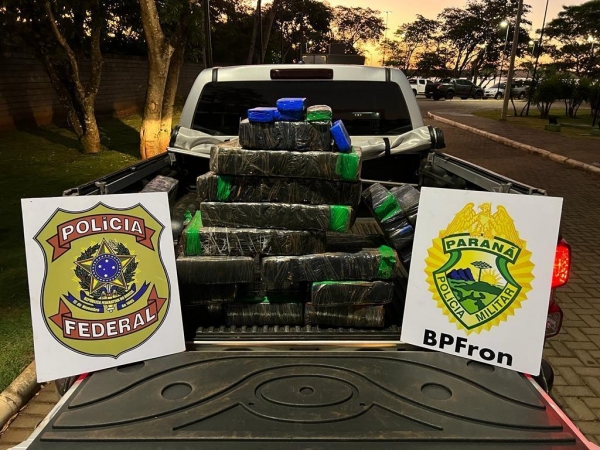 Uma caminhonete carregada com mais de 150 quilos de maconha foi apreendida em ação conjunta de equipes do BPFron (Batalhão de Polícia de Fronteira) e da Polícia Federal na quarta-feira (14), na cidade de Pato Bragado. Conforme o BPFron, a Chevrolet S-10 havia sido furtada em Cascavel.