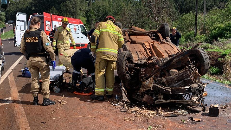 Um capotamento deixou um jovem ferido na BR-163, no Contorno Oeste de Cascavel, na manhã desta terça-feira (22).