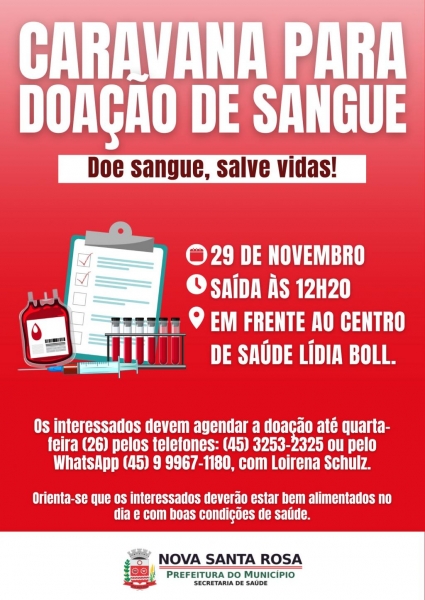 Os interessados em participar da Caravana para Doação de Sangue têm até quarta-feira, dia 26 de novembro, para confirmar presença.