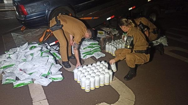 Policiais militares da Rotam (Rondas Ostensivas Tático Móvel) de Toledo, abordaram um veículo abarrotado de contrabando de agrotóxicos na madrugada desta quinta-feira (20) na rodovia PRc-163. O defensivo químico estavam em um veículo Volkswagen Passat conduzido por um jovem de 24 anos.