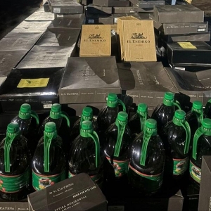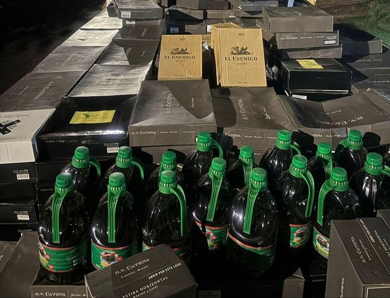Foi realizada uma verificação no veículo onde foram encontrados aproximadamente 20 galões de azeite de oliva de origem estrangeira bem como aproximadamente 700 caixas de vinho também de origem estrangeira.