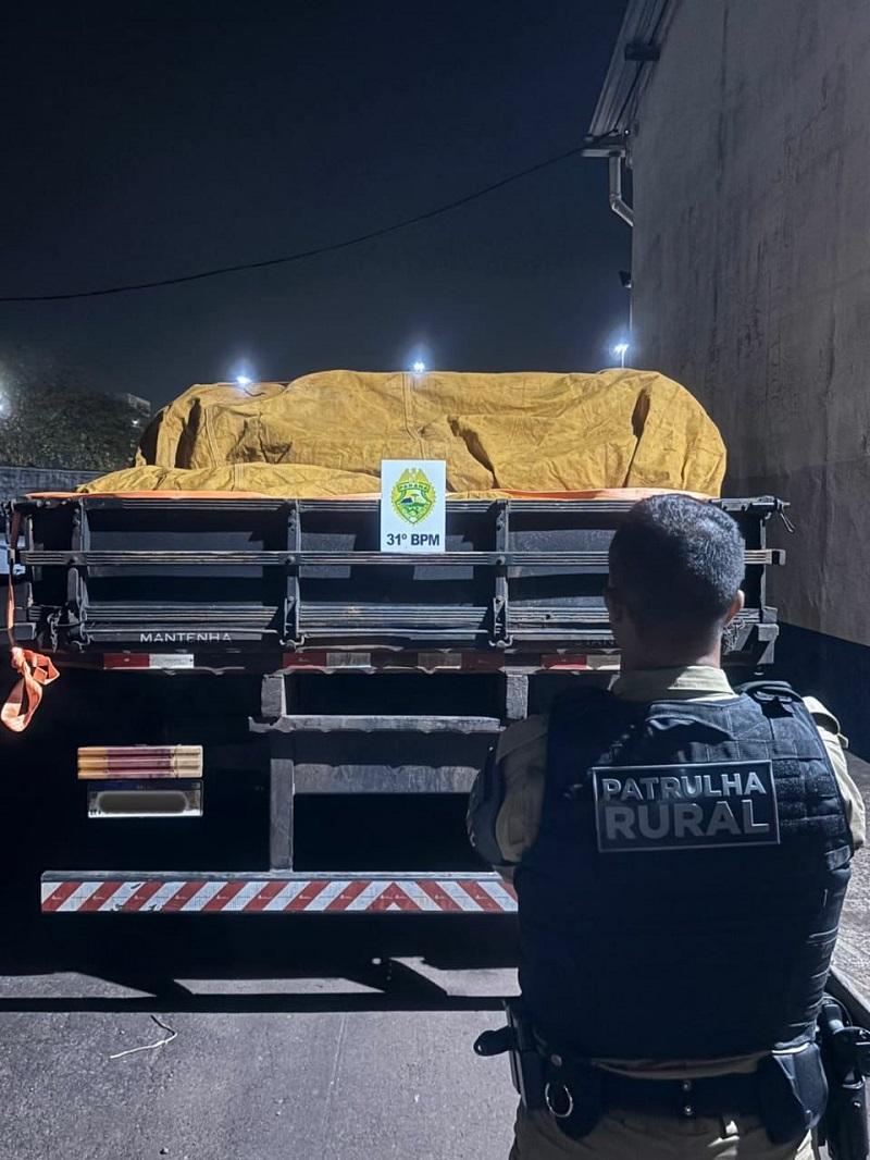 Equipe da Patrulha Rural realizou a abordagem na madrugada de hoje (16) de um caminhão que estava sem iluminação traseira, o condutor informou que estaria levando uma carga de gengibre da cidade de Capitão Leônidas Marques até Londrina.
