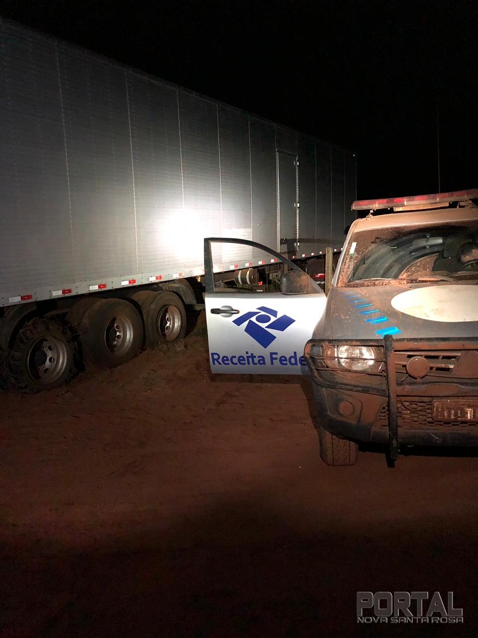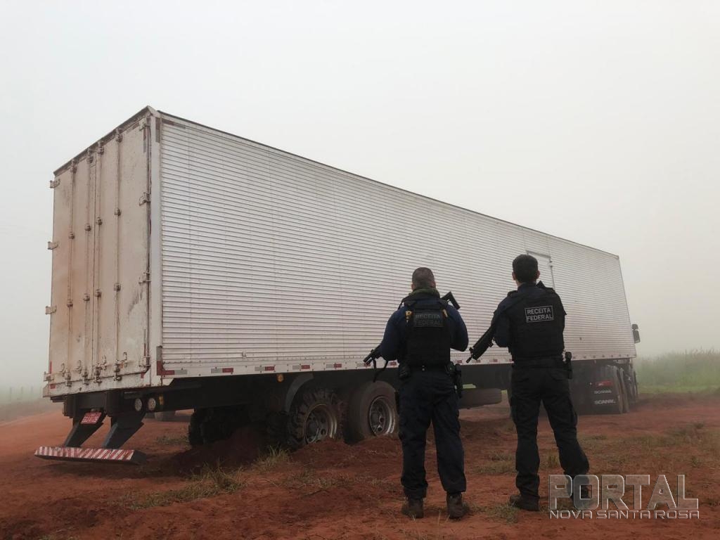 Após acompanhamento tático das viaturas da Receita Federal, o motorista do baú perdeu o controle numa curva e passou reto numa plantação de milho, atolando o veículo. Ele conseguiu fugir e não foi mais encontrado.