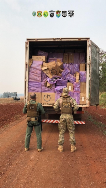 Na tentativa de abordagem, ao acionamento dos sinais luminosos e sonoros das viaturas, o comboio composto por 01 caminhão e 02 veículos iniciou tentativa de evasão pela estrada rural, abandonando 03 veículos em sequência. Um contrabandista foi preso em flagrante, portando consigo a quantia aproximada de R$ 60 mil além do carregamento ilícito.