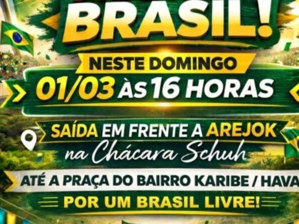 Moradores de Quatro Pontes organizam para este domingo, dia 1º de março, uma carreata intitulada “Acorda Brasil”. A mobilização é apresentada como uma iniciativa popular, reunindo cidadãos que desejam se manifestar de forma pacífica em defesa de pautas que consideram importantes para o país.