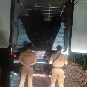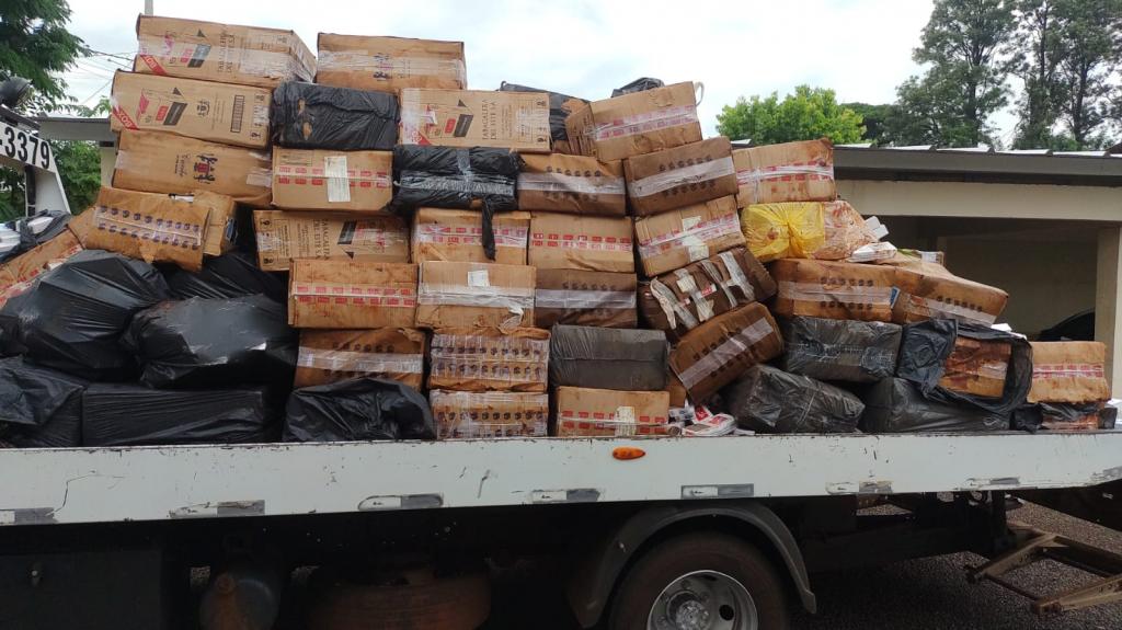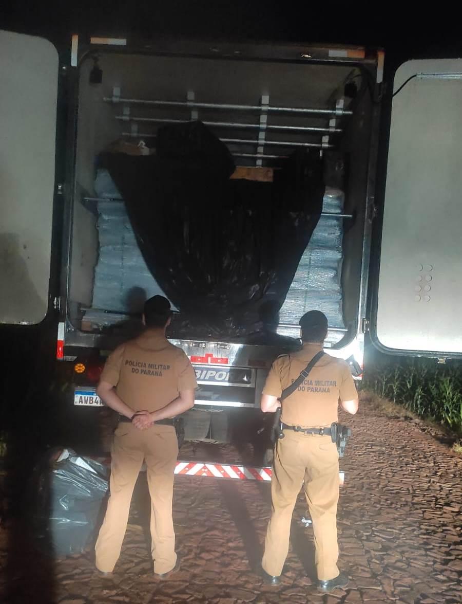 Os policiais militares receberam a informação que o veículo estava parado, as margens de uma lavoura de milho e caixas de cigarros contrabandeados do Paraguai estavam sendo carregados no baú da carreta juntamente com a carga de frangos.