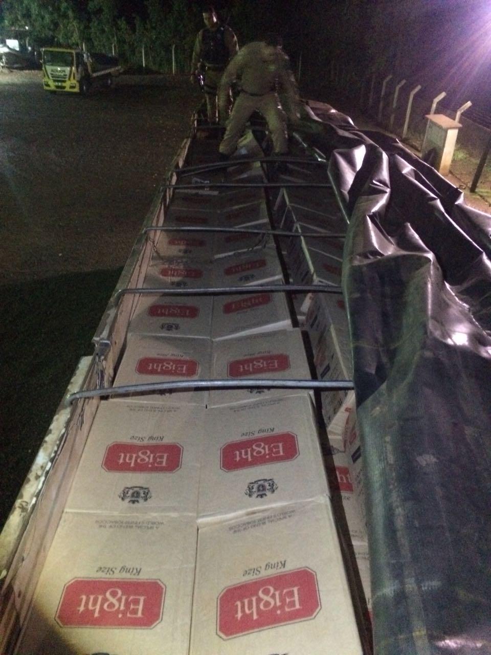 Na noite de ontem (15), policiais militares do BPFron - Batalhão de Polícia de Fronteira realizavam patrulhamento em Marechal Rondon, no distrito de Novo Três Passos, quando abordaram dois veículos próximo a uma propriedade rural sendo eles um Fiat/Strada e um Citroen C3 sendo que após diligências e entrevista aos abordados, os policiais militares chegaram a uma chácara aonde vários indivíduos estavam, e com a chegada do BPFRON evadiram-se em meio à mata . Na chácara foi localizada uma carreta carregada com aproximadamente 800 caixas de cigarros contrabandeados do Paraguai.
