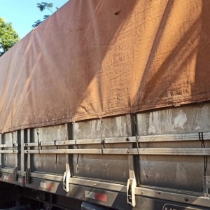 A equipe policial então solicitou que o motorista retirasse a lona da carreta, para averiguar a carga. Neste momento, o senhor proprietário da empresa, informou que as placas não vêm carregadas daquela forma: sempre vem carregadas em pallets, para proteger os produtos.