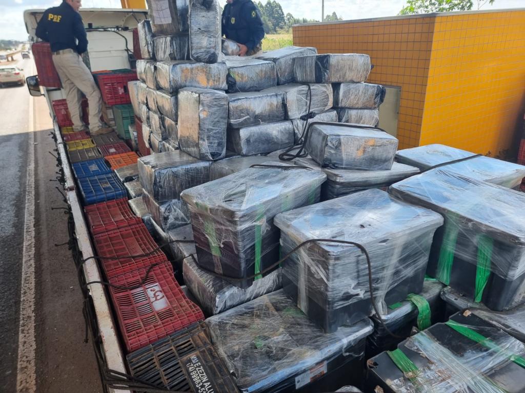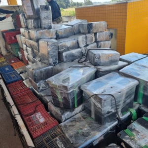 Foi então realizado uma busca minuciosa no veículo que estava carregado com caixas vazias, sendo que ao vistoriarmos a carga, foi possível constatar que estava sendo transportado algum ilícito.