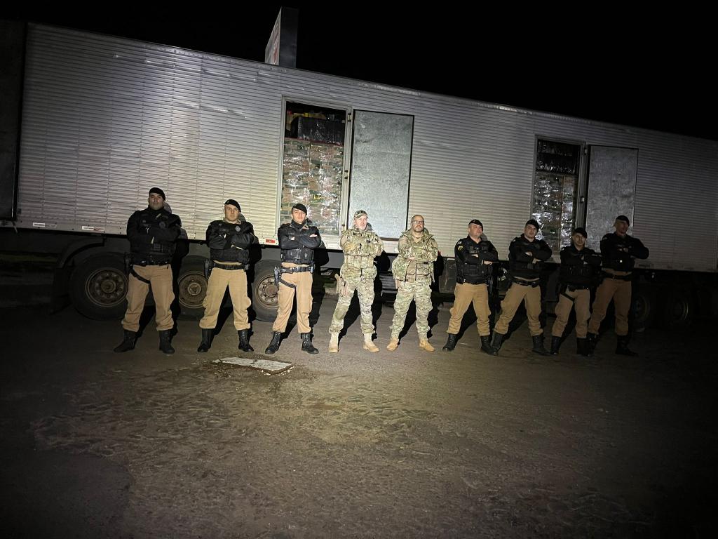 Equipe ROTAM do 19º BPM, no âmbito da Operação Protetor, realizava uma ação conjunta com a equipe da PRF, quando visualizou um caminhão transitando na BR 163 em Toledo com as luzes frontais apagadas.
