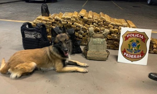 Neste sábado a polícia realizou abordagem de uma carreta na BR 376, em área do Distrito de Iguatemi. Diante de suspeitas, a carreta foi levada à Delegacia da Polícia Federal, onde os cães farejadores indicaram a presença de entorpecentes. Os policiais então localizaram no assoalho da carreta a presença de diversos tabletes de maconha, totalizando 269 kgs da droga.