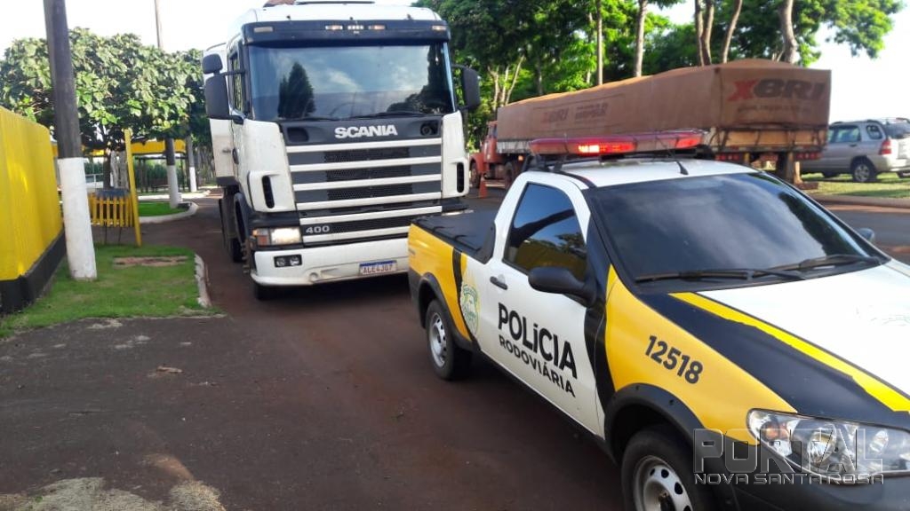 Por volta das 17h00 de hoje, durante patrulhamento na rodovia estadual PR 488, zona rural do município de Diamante do Oeste, policiais rodoviários abordaram uma SCANIA/R124, cor branca, que na oprtunidade tracionava um SEMI REBOQUE.