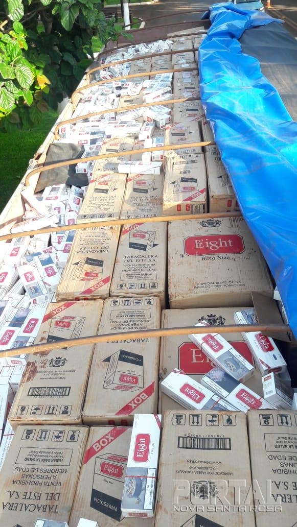 Durante a abordagem o motorista informou estar transportando semente de girassol, inclusive apresentando notas fiscais e abrindo a parte traseira da carreta, onde era possível observar as bolsas com semente de girassol; Dessa forma, num primeiro momento, o veículo e o motorista foram liberados para seguir viagem, todavia, devido ao fato do condutor ter demonstrado certo nervosismo durante a abordagem, foi deslocado na direção do veículo suspeito e feito uma nova abordagem, onde foi constatado que a carreta estava carregada com 600 (seiscentas) caixas de cigarro de procedência paraguaia.