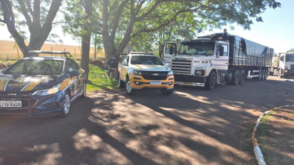 Após informações de que um veículo caminhão SCANIA 113-H, o qual tracionava um semi- reboque, estaria transportando entorpecentes e deslocava-se de Santa Helena- PR com destino a grande Porto Alegre, foram realizadas buscas na região e a abordagem.