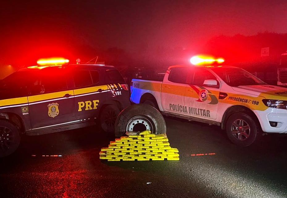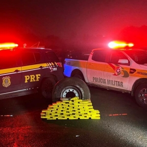 Após troca de informações, as duas forças de segurança interceptaram o veículo na rodovia estadual SC-480, município de São Domingos/SC no oeste catarinense. A droga estava no interior do estepe.