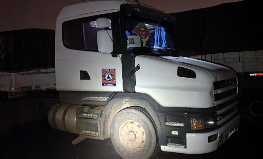 A carreta, com placas de Cascavel (PR), transportava aproximadamente 20 toneladas de donativos, arrecadados de forma correta pela Defesa Civil, no Paraná.