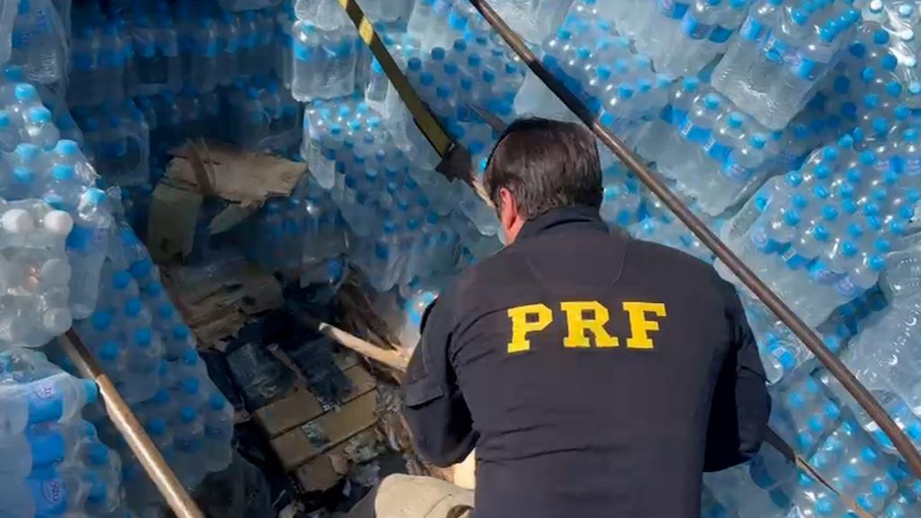O veículo saiu de Toledo, no Paraná, com destino à Porto Alegre. Na carga havia água, alimentos, roupas e ração. No entanto, abaixo dos produtos, foi descoberto um fundo falso ocupando cerca de metade da capacidade do semirreboque. Dentro do compartimento, os PRFs encontraram diversos tabletes de maconha.
