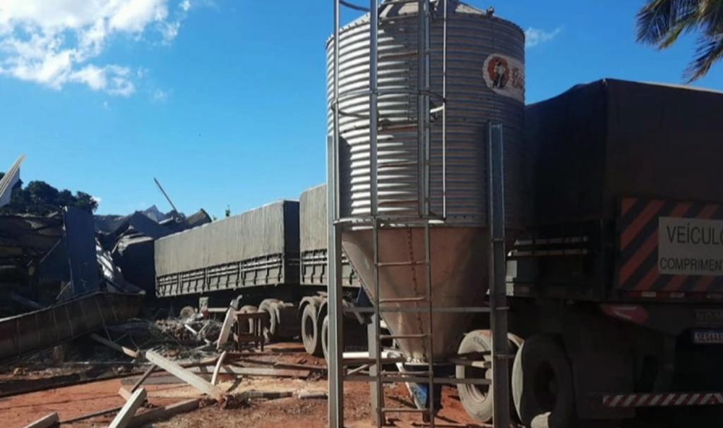 Na sequência, o caminhão perdeu os freios, saiu da pista e bateu em um barracão de uma granja.