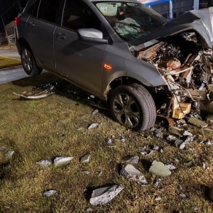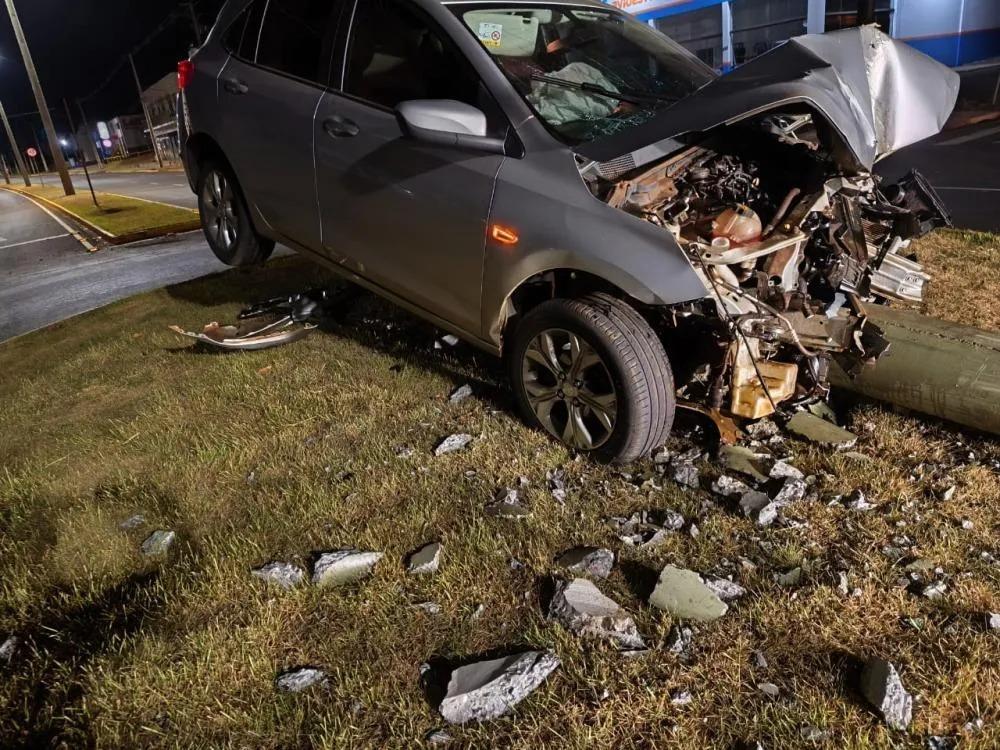 O acidente envolveu um Chevrolet Ônix, com placas do Brasil, que colidiu violentamente contra um poste de iluminação pública. Com o impacto, o poste foi derrubado e o veículo sofreu danos de grande proporção.