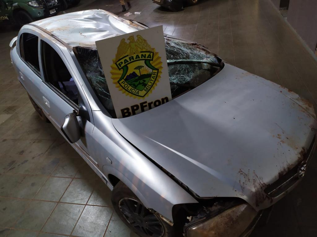 Dois homens ficaram feridos na noite de ontem (10) em Guaíra após capotarem um Astra durante fuga do BPFron. Um deles resultou com ferimentos graves na perna em decorrência do acidente.