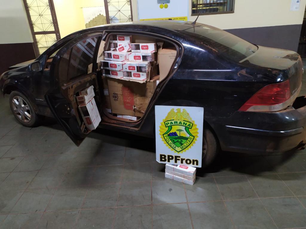 Policiais Militares do BPFron realizavam patrulhamento pela área rural de Guaíra, quando em dado momento, se depararam com um comboio com aproximadamente seis veículos vindo em sentido contrário a via, em alta velocidade, atitudes estas, típicas de veículos que transportam contrabando.