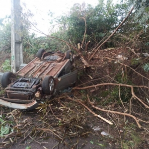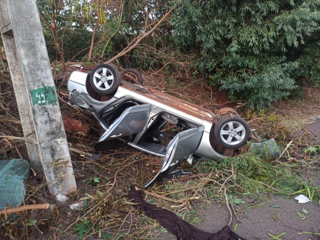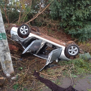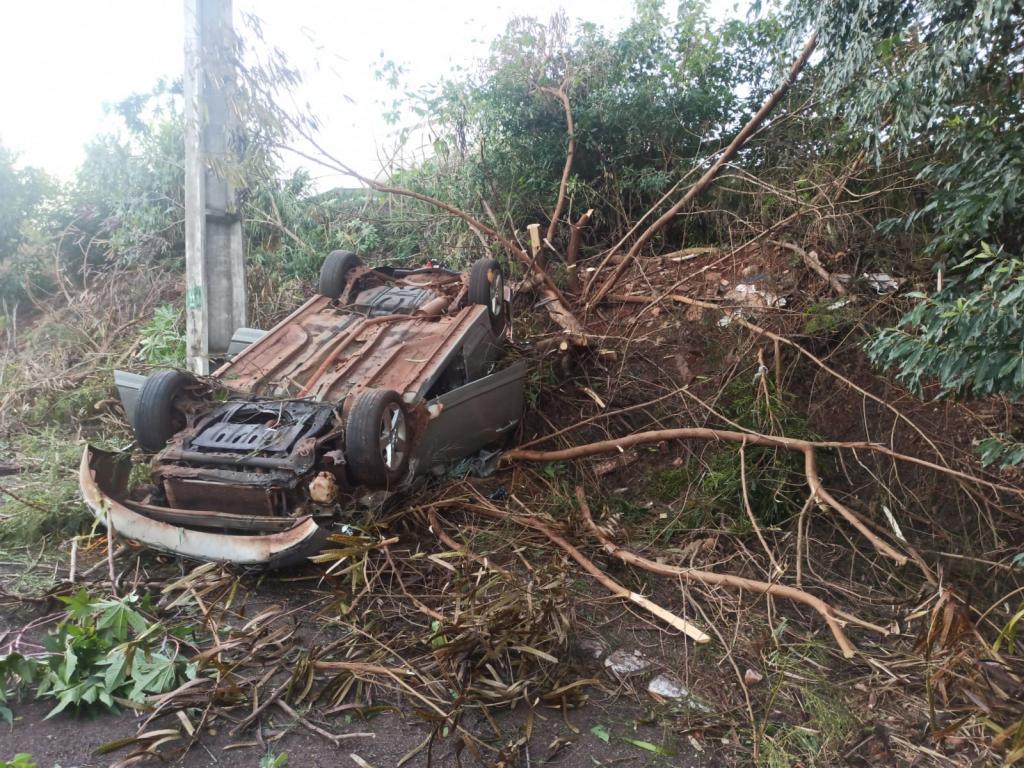 Um Honda Civic capotou após sair da pista na manhã de hoje (01) na rotatória do trevo da avenida Egídio Jerônimo Munaretto com a rodovia PR-585 saída de Toledo para São Pedro do Iguaçu.