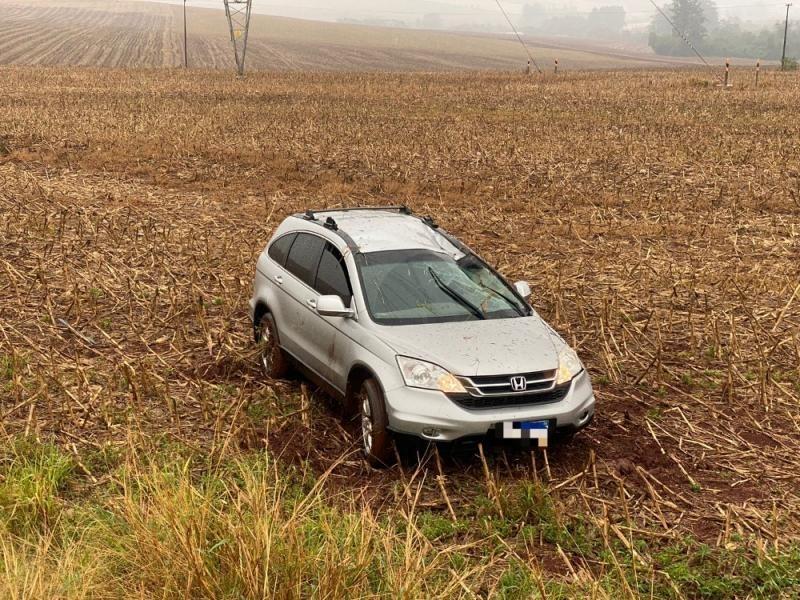 O acidente ocorreu por volta das 10h30min, próximo ao São Luiz. O veículo, com placa de Mercedes, parou em uma lavoura.