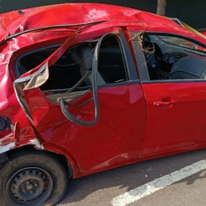 Um carro capotado chamou atenção de quem passava pela PR-239, em Toledo, na madrugada deste sábado (29). O veículo, um Fiat Punto vermelho com placas de Curitiba, estava tombado no meio da rodovia, próximo à comunidade de Linha Flórida, bloqueando parte da pista.