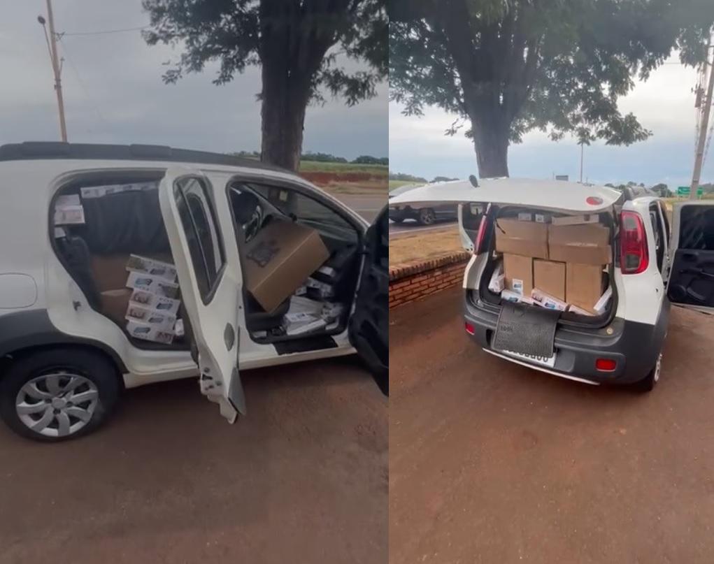 A Polícia Rodoviária Federal realizou a apreensão de um carro carregado com cigarros em Marechal Rondon.