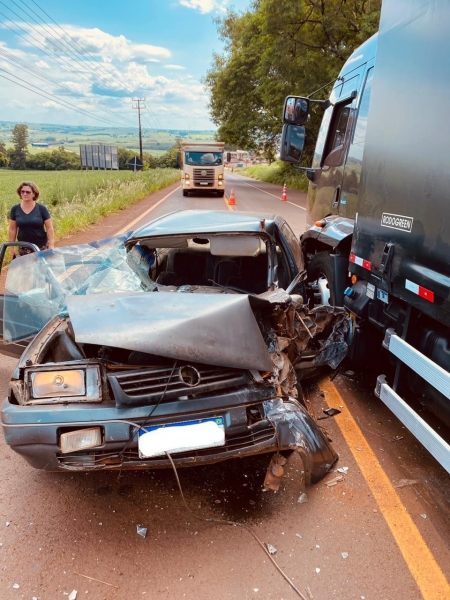 O acidente aconteceu por volta de 14h15, no quilômetro 302 da rodovia. Conforme o BPRv (Batalhão de Polícia Rodoviária Estadual), o Volkswagen Santana trafegava no sentido Jesuítas/Formosa do Oeste e colidiu frontalmente com um caminhão, que seguia na pista contrária.