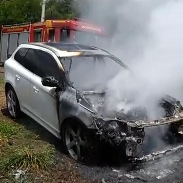 O Volvo XC60 trafegava pela rodovia que liga Marechal à Margarida, quando apresentou problemas e pegou fogo, nas proximidades da Estância Coroados.