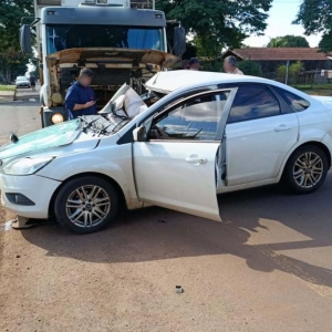 O trânsito de Toledo novamente foi palco de um acidente de grandes proporções. Uma forte colisão ocorreu na tarde desta quinta-feira (3), no bairro Jardim Porto Alegre, envolvendo um caminhão Volkswagen modelo 24.280, de transporte de suínos, e um automóvel Ford Focus com placas de Toledo, conduzido por um homem de 56 anos.