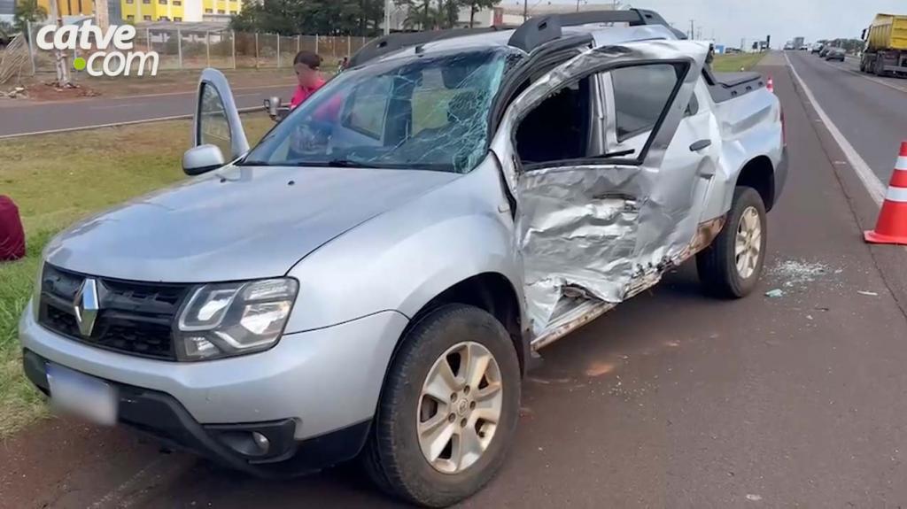 Informações dão conta de que o veículo, uma Renault Oroch, estava parado no acostamento e, ao tentar acessar a rodovia, acabou sendo atingido lateralmente por um caminhão Mercedes-Benz Atego, que seguia pela pista.